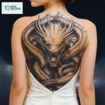 Le tatouage semi-permanent «Roi des Serpents» est un chef-d’œuvre en style réalisme noir, représentant un serpent majestueux entouré d’éléments royaux comme une couronne. Conçu pour le dos entier ou la poitrine, ce design spectaculaire exprime la puissance, la sagesse et l’aura mystérieuse du roi des serpents.