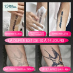 Fabriqué à partir d’extraits végétaux, ce tatouage est sûr pour la peau, sans parfum artificiel. Il disparaît naturellement au bout de 10 à 14 jours sans laisser de trace. Une manière idéale de tester un grand motif réaliste avant de passer à un tatouage permanent.